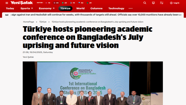 YENIŞAFAK – Türkiye hosts pioneering academic conference on Bangladesh’s July uprising and future vision